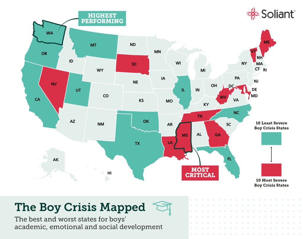 This growing gender gap—often called “the boy crisis”—isn’t about boys versus girls, but about how our education and support systems can better serve both. As educators, therapists, and parents strive to meet every child’s needs, data shows that boys are struggling in key areas that affect their future success and mental health. Soliant’s Boy Crisis Index set out to measure just how deep this disparity runs and where the solutions are already taking shape.